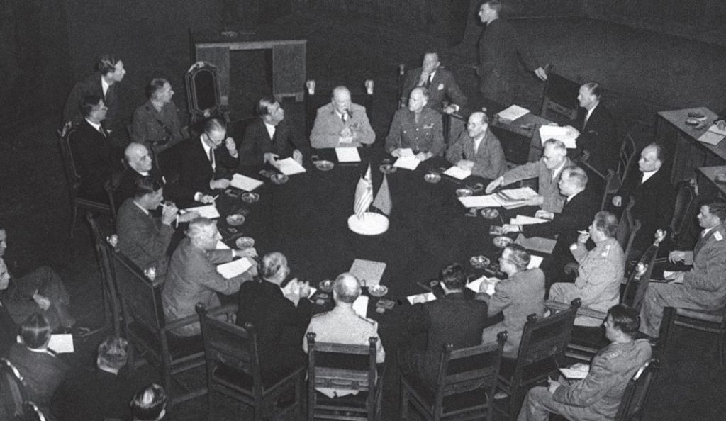 Δεσπόζει η εντυπωσιακή κατακόκκινη τραπεζαρία διαμέτρου 6,8 μ. με τις ασορτί καρέκλες – όλα τους προϊόντα του μοσχοβίτικου εργοστασίου Λουξ – στην κεντρική αίθουσα του ανακτόρου Σεσίλιενχοφ, στο Πότσνταμ της Γερμανίας. Εκεί όπου οι τρεις μεγάλοι ηγέτες – ο βρετανός πρωθυπουργός Ουίνστον Τσόρτσιλ, ο αμερικανός πρόεδρος Χάρι Τρούμαν και ο σοβιετικός ηγέτης Ιωσήφ Στάλιν – είχαν περάσει από τις 17 Ιουλίου έως τις 2 Αυγούστου 1945 (τις πέντε τελευταίες ημέρες ο Τσόρτσιλ αντικαταστάθηκε στο τραπέζι των διαπραγματεύσεων από τον Κλέμεντ Ατλι, καθώς ολοκληρώθηκε η καταμέτρηση των ψήφων της εκλογικής αναμέτρησης του Μαΐου στη Βρετανία και είχε χάσει τις εκλογές) σχεδιάζοντας τον μεταπολεμικό χάρτη της Ευρώπης και όχι μόνο, κατά τη διάρκεια της Διάσκεψης του Πότσνταμ, την τελευταία διάσκεψη των αρχηγών των τριών μεγάλων συμμαχικών δυνάμεων αμέσως μετά την άνευ όρων παράδοση της Γερμανίας και το τέλος του Β’ Παγκοσμίου Πολέμου.