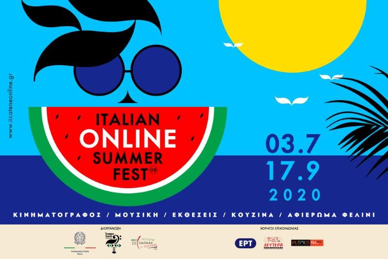 Από τις 3 Ιουλίου έως τις 17 Σεπτεμβρίου θα πραγματοποιηθεί το Italian Online Summer Fest, ένα διαδικτυακό αφιέρωμα με δράσεις Made in Italy από τον κόσμο του Πολιτισμού που διοργανώνουν στην Ελλάδα η Πρεσβεία της Ιταλίας και το Ιταλικό Μορφωτικό Ινστιτούτο Αθηνών.