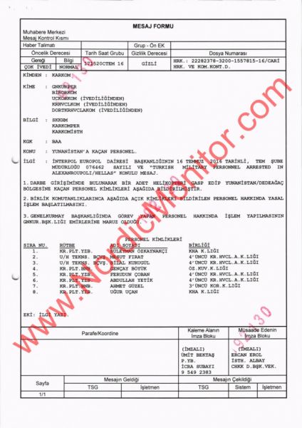 Η τουρκική κυβέρνηση είχε δηλώσει τότε επίσημα: «Ο πρωθυπουργός της Ελλάδας Αλέξης Τσίπρας δεν τήρησε την υπόσχεσή του παρά την αρχική του δήλωση «ότι θα τους παραδώσουμε αμέσως». Αναμένουμε να δούμε αν ο Έλληνας πρωθυπουργός θα τηρήσει την υπόσχεσή του.»