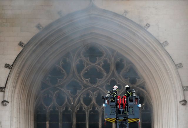 Πυροσβέστες προσπαθούν να κατασβέσουν πυρκαγιά που ξέσπασε νωρίς σήμερα το πρωί στο εσωτερικό του καθεδρικού ναού της πόλης Νάντη, στη δυτική Γαλλία, ανέφερε στο Twitter η τοπική πυροσβεστική υπηρεσία.