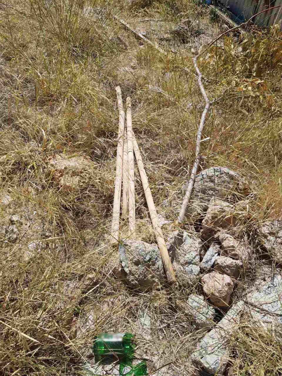 Σύμφωνα με την Αστυνομία βρέθηκαν συνολικά 18 αυτοσχέδιοι εμπρηστικοί μηχανισμοί τύπου βόμβας μολότοφ και 12 ξύλινα στυλιάρια, μήκους περίπου ενός μέτρου.