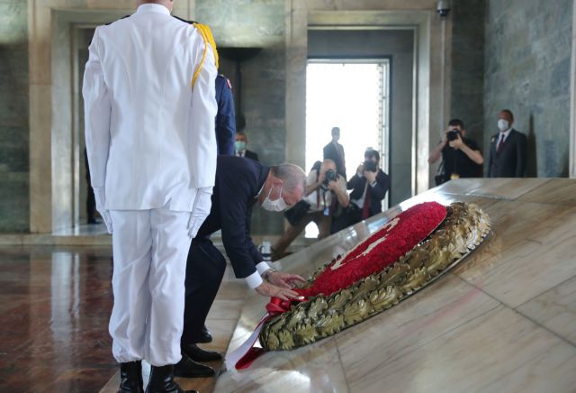 Ο Ερντογάν επισκέφθηκε το μαυσωλείο του Ατατούρκ για να αποτίσει φόρο τιμής στον ιδρυτή της Τουρκίας και εκεί έγραψε και στο βιβλίο επισκεπτών.