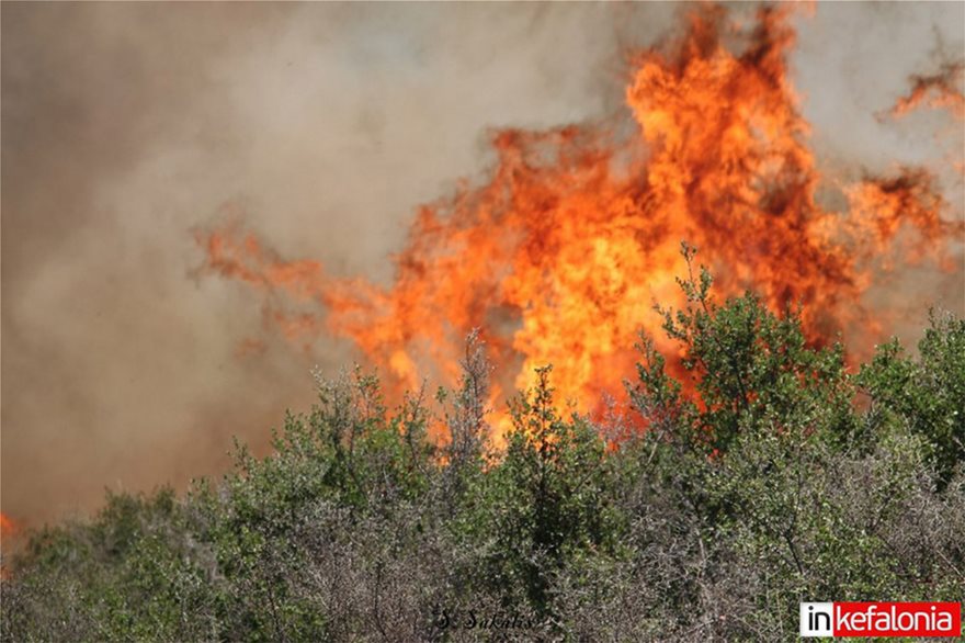 Φωτιά σε δασική έκταση βρίσκεται σε εξέλιξη στην περιοχή Κεραμειές Κεφαλονιάς.