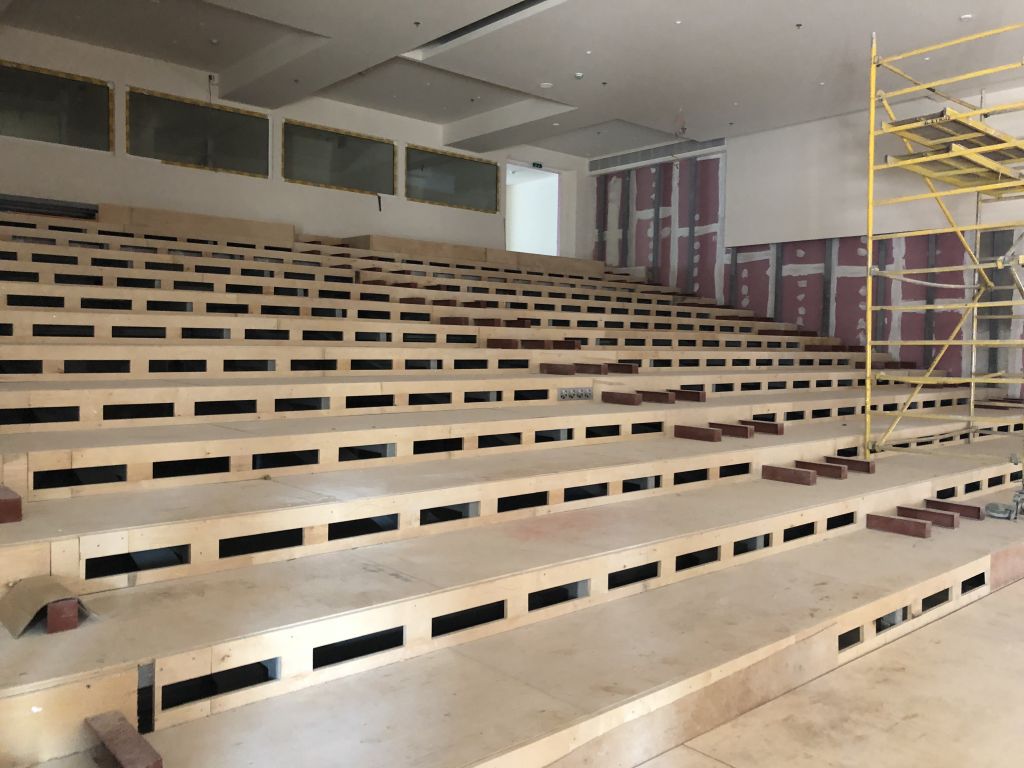 Στους εκθεσιακούς χώρους τοποθετούνται τα πατώματα, οι επενδύσεις στους τοίχους και οι ψευδοροφές, ενώ προχωρούν και οι εγκαταστάσεις στους χώρους υγιεινής. Σε εξέλιξη βρίσκεται και η κατασκευή του κεντρικού αμφιθεάτρου, το οποίο θα παραδοθεί ολοκληρωμένο τον προσεχή Οκτώβριο.