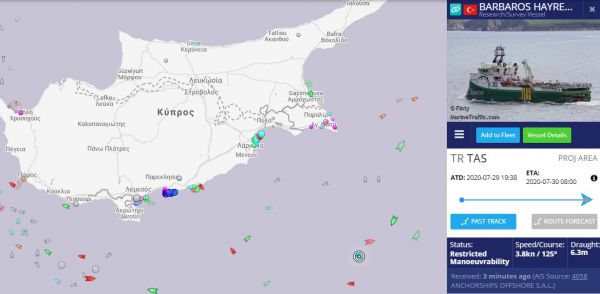 Λίγες ώρες μετά τη NAVTEX που εξέδωσε η Άγκυρα, το Barbaros απέπλευσε από το λιμάνι Τάσουτζου της Σελεύκειας, στη νότια Τουρκία, όπου βρισκόταν αγκυροβολημένο με κατεύθυνση προς τις δεσμευμένες περιοχές της Κυπριακής ΑΟΖ.