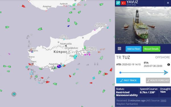 Εκτός από το ερευνητικό Barbaros εντός της Κυπριακής ΑΟΖ, νοτιοδυτικά των ακτών της Πάφου, βρίσκεται και το τουρκικό γεωτρύπανο Yavuz.