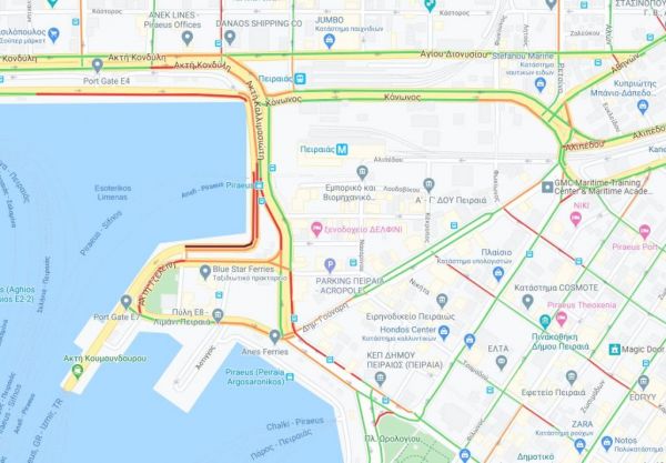 Αυξημένη η κίνηση και στους δρόμους περιμετρικά του λιμανιού του Πειραιά