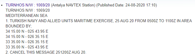 Ουσιαστικά με την εν λόγω Navtex απαντά στην αντι-Navtex της Ελλάδας, στην τουρκική παράνομη Navtex για το Oruc Reis.
