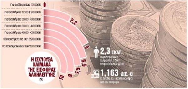 Η ειδική εισφορά αλληλεγγύης επιβαρύνει σήμερα τους φορολογουμένους που αποκτούν εισοδήματα άνω των 12.000 ευρώ και επιβάλλεται με συντελεστές που ξεκινούν από 2,2% και φθάνουν κλιμακωτά το 10% για τους έχοντες υψηλά εισοδήματα. Το συγκεκριμένο μέτρο αγγίζει 2,3 εκατομμύρια φορολογουμένους, οι οποίοι πληρώνουν συνολικά 1,163 δισ. ευρώ. Σύμφωνα με την ισχύουσα νομοθεσία, η ειδική εισφορά αλληλεγγύης επιβάλλεται στο μεγαλύτερο ποσό μεταξύ του συνολικού ετήσιου εισοδήματος που δηλώνει ο φορολογούμενος από όλες τις πηγές και του τεκμαρτού εισοδήματός του, το οποίο προκύπτει με βάση τα τεκμήρια διαβίωσης. Η εισφορά αλληλεγγύης παρακρατείται από μισθούς και συντάξεις παράλληλα με τον φόρο εισοδήματος ενώ σε ελεύθερους επαγγελματίες, εισοδηματίες και άλλες κατηγορίες φορολογουμένων βεβαιώνεται με τη φορολογική δήλωση του επόμενου έτους. Για πρώτη φορά επιβλήθηκε με τον Νόμο 3986/2011. Αρχικά προβλεπόταν να ισχύσει μέχρι το φορολογικό έτος 2014, ωστόσο με τον Νόμο 4305/2014 επεκτάθηκε και στο φορολογικό έτος 2015 για να συνεχίσει να επιβάλλεται μέχρι σήμερα κλιμακωτά σε εισοδήματα πάνω από 12.000 ευρώ με συντελεστές από 2,2% έως 10%.