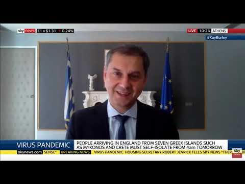 Ο υπουργός Τουρισμού ρωτήθηκε από τη δημοσιογράφο του BBC, αν στα 7 ελληνικά νησιά που αφαιρέθηκαν από το καθεστώς απαλλαγής από την καραντίνα, τα κρούσματα ανά 100.000 κατοίκους είναι λιγότερα από 20, αριθμό που έχει θέσει ως όριο η Βρετανία.
