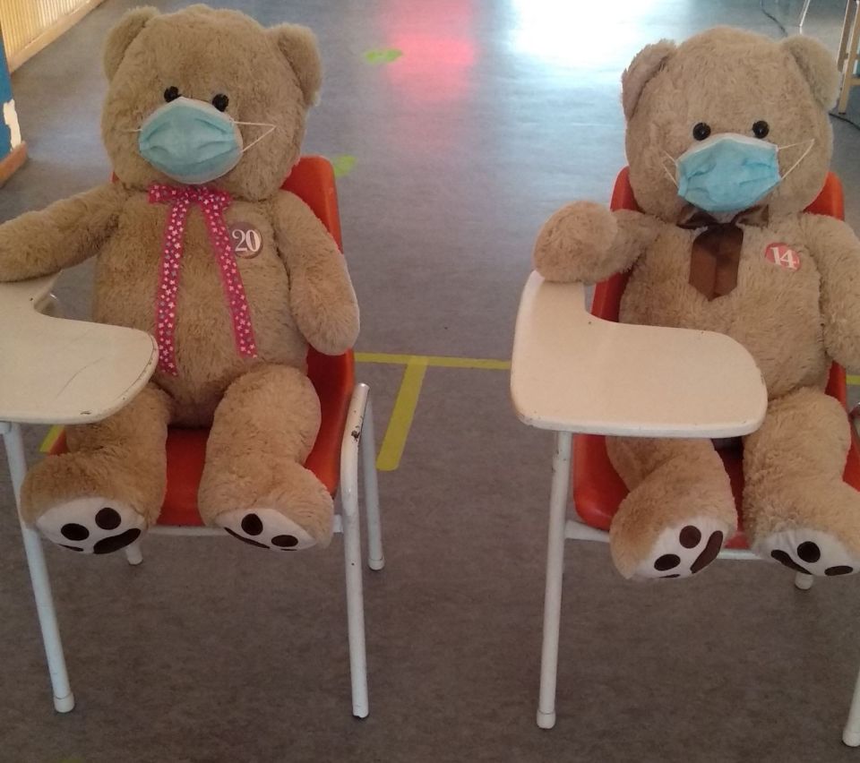 Τους σύστησε στον “Δεκατεσσερούλη” και την “Εικοσούλα” , τα δίδυμα αρκουδάκια που πήγαν στο σχολείο με μάσκα και κάθισαν στα θρανία τους, φορώντας τη και περιμένοντας να αρχίσει το μάθημα.
