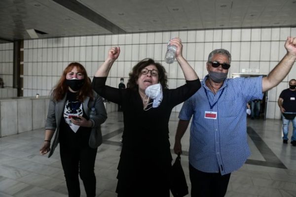 Με δάκρυα στα μάτια και φωνάζοντας το όνομα του γιου της, Παύλου, αντέδρασε στην απόφαση της δίκης για τη Χρυσή Αυγή η Μάγδα Φύσσα.
