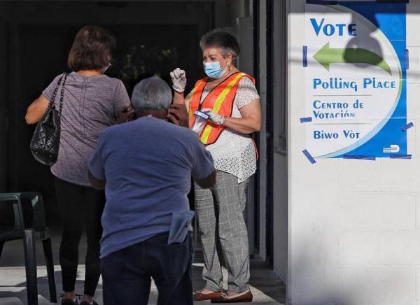 Αναρτήσεις σε ιστότοπους κοινωνικής δικτύωσης έδειχναν ουρές ψηφοφόρων να περιμένουν σε 52 από τις 67 κομητείες της Φλόριντα χθες. Εκατοντάδες άνθρωποι περίμεναν, οι περισσότεροι φορώντας μάσκα, μέσα στη βροχή.