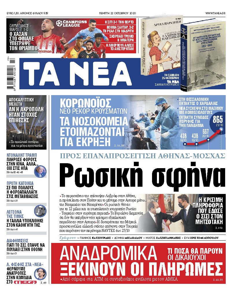 • Το παρασκήνιο της επίσκεψης Λαβρόφ στην Αθήνα, η πρόσκληση στον Πούτιν και το μήνυμα στην Αγκυρα μέσω… της Ναυμαχίας του Ναυαρίνου • Οι ρωσικές θέσεις για τα 12 μίλια και οι γεωπολιτικές ισορροπίες Ρωσίας – Τουρκίας στην ευρύτερη περιοχή • Το Βερολίνο διαμηνύει ότι δεν θα υπάρξουν νέες κρίσιμες εξοπλιστικές παραδόσεις στην Αγκυρα • Η δυσαρέσκεια της Μέρκελ προαναγγέλλει αλλαγή στάσης απέναντι στην Τουρκία που παρέτεινε την παράνομη NAVTEX έως 27/10