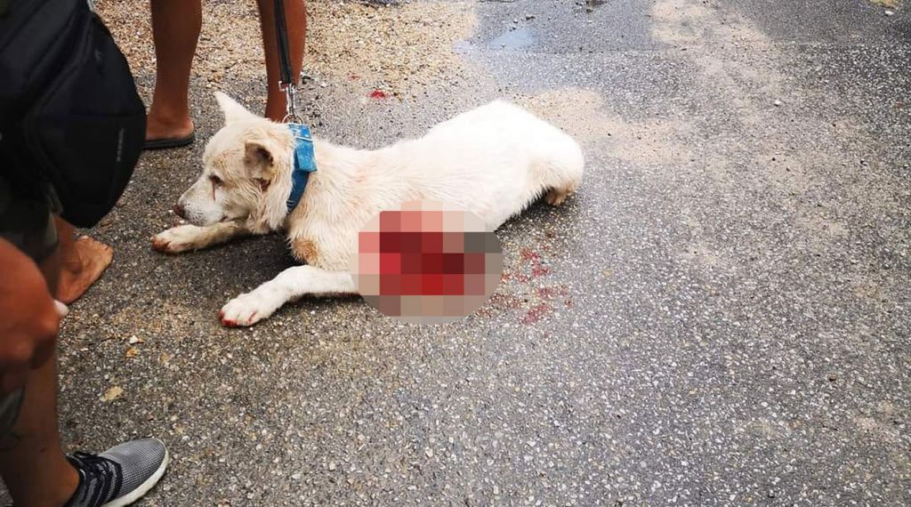 Ο σκύλος ήταν ημιλιπόθυμος γιατί είχε χάσει πάρα πολύ αίμα, ωστόσο, ο δράστης δεν σταματούσε.