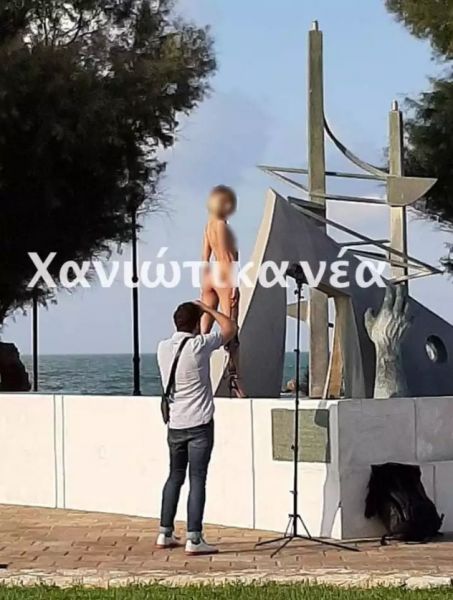 Γυμνή φωτογράφιση στο μνημείο του ναυαγίου «Ηράκλειον» στην πλατεία Τάλω, πραγματοποιήθηκε πρόσφατα μπροστά στα έκπληκτα μάτια περαστικών.