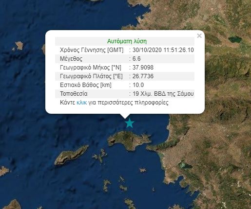 Ισχυρός σεισμός 6,7 Ρίχτερ με επίκεντρο τη Σάμο σημειώθηκε λίγο πριν τις 14:00 το μεσημέρι της Παρασκευής.