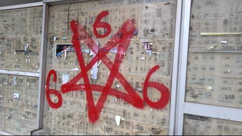 Άγνωστοι έγραψαν με σπρέι σε βιτρίνες ξενοίκιαστων καταστημάτων, σε τοίχους πολυκατοικιών, καθώς και σε άλλα σημεία της πόλης, τις λέξεις «θρίλερ» και «666», ενώ ζωγράφισαν και πεντάλφα.