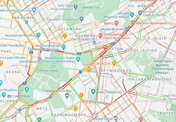 Ο κόσμος φαίνεται πως έχει βγει για τα τελευταία του ψώνια καθώς επικρατεί κυκλοφοριακό χάος, όπως φαίνεται και στον παρακάτω χάρτη.