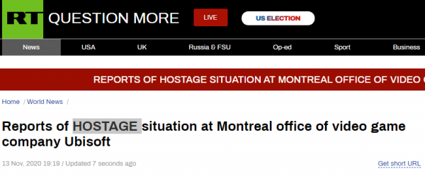 Journal de Montreal is reporting that a possible hostage situation involving dozens of people is ongoing in the Ubisoft building. pic.twitter.com/qdxNRoTP3C