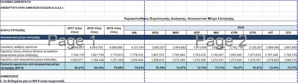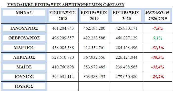 Αναγκαστικά μέτρα είσπραξης αντιμετωπίζουν 1.720.743 οφειλέτες. Την αντίστοιχη περίοδο το 2019, το πλήθος των οφειλετών ήταν 3.874.902