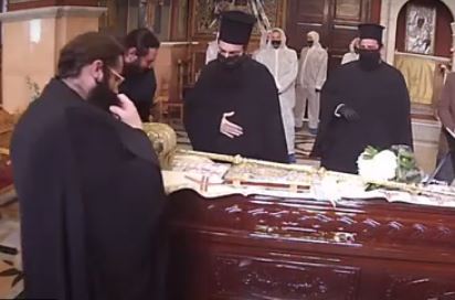 Όπως θα δείτε στο βίντεο την ώρα που προσκυνούσαν την σορό του μακαριστού ιεράρχη στο σφραγισμένο φέρετρο κάποιοι ιερείς έβγαζαν την μάσκα τους (01:37:12)