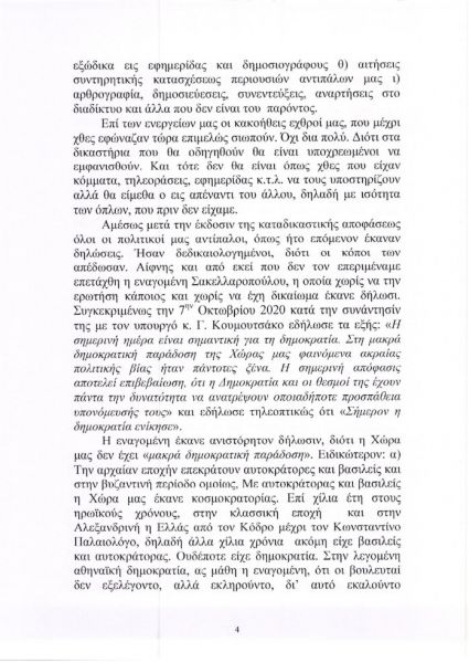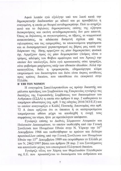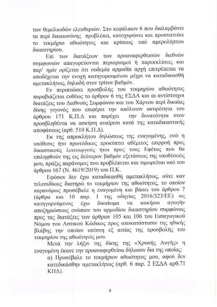 «Προκαλεί, δε, ιδιαίτερα αλγεινή εντύπωση το γεγονός ότι μια πρώην δικαστικός προέβη σε αυτές τις εξωφρενικές δηλώσεις αλλά και στον σχολιασμό δικαστικής απόφασης, πράγμα που είναι ανεπίτρεπτο και παράνομο», υποστηρίζεται μεταξύ άλλων στην αγωγή.