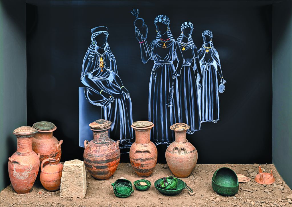 Μια δεύτερη ανθρωποθυσία – δύο γυναικών αυτή τη φορά – με τα χέρια δεμένα, η μία ριγμένη μπρούμυτα και η άλλη σε συνεσταλμένη στάση, θυμίζει τη θυσία της Πολυξένης στον τύμβο του Αχιλλέα, ενώ ιδιαίτερο ενδιαφέρον έχει η ανακάλυψη των σκελετών τεσσάρων γυναικών ηλικίας 13, 16, 28 και 72 ετών που τάφηκαν τον 7ο αι. π.Χ. ταυτοχρόνως επειδή πιθανόν πέθαναν σε κάποια επιδημία. Η γηραιότερη φαίνεται πως θάφτηκε καθιστή καθώς το κρανίο της βρέθηκε στη λεκάνη της και πιθανόν να είχε ρόλο αρχιέρειας, ενώ τα πλούσια κτερίσματα που συνόδευαν και τις άλλες τρεις νεκρές δείχνουν την υψηλή κοινωνική τους θέση (πιθανόν να ήταν πριγκίπισσες).