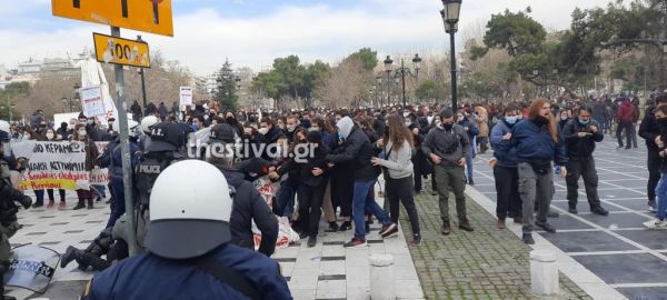 Επεισόδια μεταξύ διαδηλωτών και αστυνομίας κατά τη διάρκεια του πανεκπαιδευτικού συλλαλητηρίου που διοργανώνεται στη Θεσσαλονίκη.