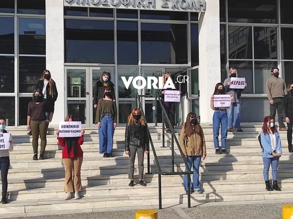 Κρατώντας πλακάτ, όπως αναφέρει το voria.gr και φορώντας μαύρα μαντήλια, φοιτήτριες του ΑΠΘ εξέφρασαν μπροστά στα σκαλιά της Φιλοσοφικής Σχολής σιωπηρά τη διαμαρτυρία τους για τα περιστατικά που ήρθαν στο φως.