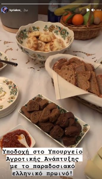 Στο βίντεο που ανέβασε ο πρωθυπουργός στο προφίλ του στο Instagram, δείχνει το πρωινό με παραδοσιακά ελληνικά εδέσματα το οποίο είχε ετοιμαστεί για την περίσταση.