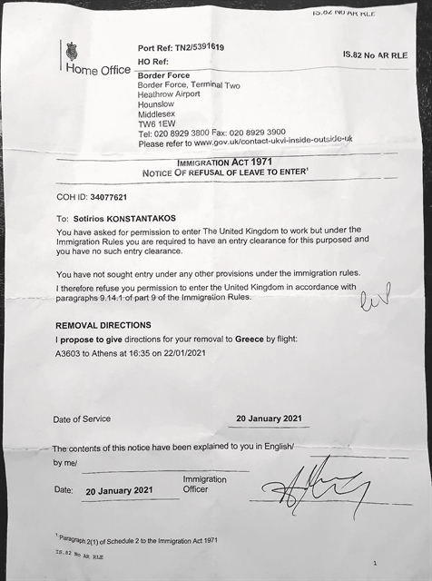Ο νεαρός κρατήθηκε επί επτά ημέρες σε κέντρο κράτησης μεταναστών έξω από το αεροδρόμιο Χίθροου. Επί 12 ώρες την ημέρα τον είχαν κλειδωμένο σε έναν θάλαμο-κελί χωρίς θέρμανση, με την εξωτερική θερμοκρασία το βράδυ να φτάνει τους -3 βαθμούς Κελσίου…