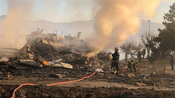Αυτόπτες μάρτυρες κάνουν λόγο για μικρές εστίες φωτιάς μετά την έκρηξη, τις οποίες οι πυροσβεστικές δυνάμεις προσπαθούν να θέσουν υπό έλεγχο.