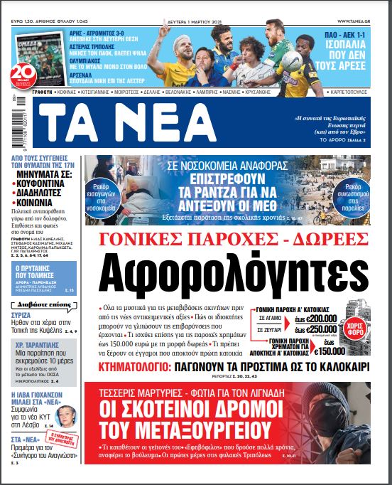 Διαβάστε στα «ΝΕΑ» της Δευτέρας