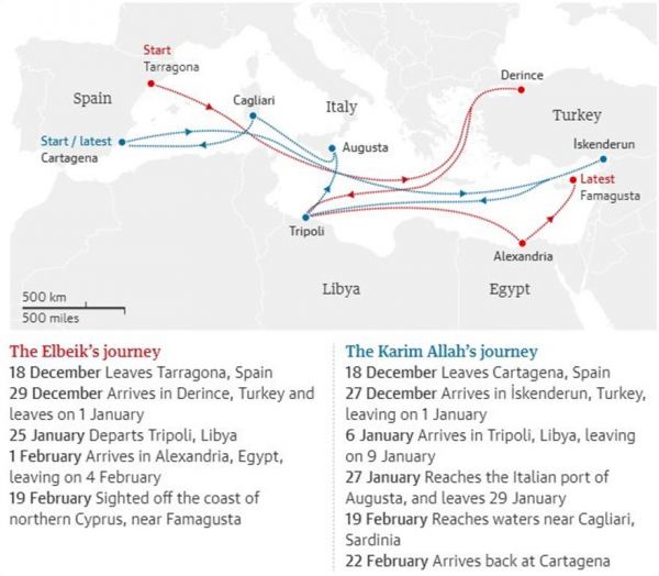 Όλα ξεκίνησαν για το Elbeik περίπου στα μέσα του Δεκεμβρίου του 2020, όταν το σημαίας Τόγκο Elbeik και το πλοίο Karim Allah σημαίας Λιβάνου ανέλαβαν τη μεταφορά των βοοειδών, από την Ταραγόνα και την Καρθαγένη της Ισπανίας προς τη Λιβύη και την Τουρκία, αλλά απαγορεύτηκε ο κατάπλους τους στη Σαρδηνία και σε λιμάνια της Λιβύης, της Αιγύπτου, της Τουρκίας και της Κύπρου.