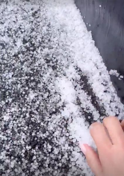 Σε άλλο βίντεο, η επιχειρηματίας και πρωταγωνίστρια ριάλιτι, έπιασε λίγο χαλάζι με το χέρι της, λέγοντας και πάλι ότι «είναι τρελό».