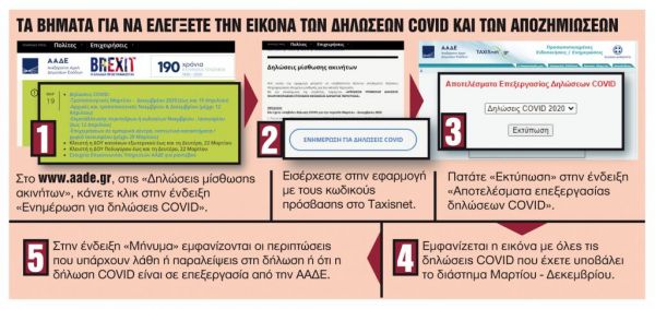 - ο αριθμός «Δήλωσης Covid» που έχει υποβληθεί.
