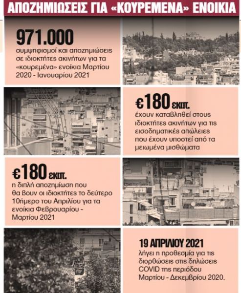 Οι φορολογούμενοι αυτοί αναμένεται να πληρωθούν σήμερα για τα «κουρεμένα» ενοίκια του Νοεμβρίου και του Δεκεμβρίου και θα λάβουν την αποζημίωση από το κράτος ανάλογα με το ποσοστό συνιδιοκτησίας που κατέχουν στο ακίνητο ενώ για τα μειωμένα ενοίκια της περιόδου Μαρτίου – Οκτωβρίου θα γίνουν συμψηφισμοί με μελλοντικές οφειλές.