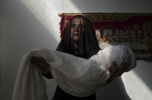 Περνώντας στην «Σταχτιά γυναίκα», ο ερχομός της δημιουργεί μια απόκοσμη -ονειρική κατάσταση στο σπίτι ενός νεαρού παντρεμένου ζευγαριού. Μπροστά στο ανοιχτό παράθυρο, ο μικρός Δώρος, ο γιος τους, θα γλιστρήσει μέσα από την αγκαλιά της και θα χαθεί στα βράχια της θάλασσας. Ο νεαρός όμορφος σύζυγος μαγεύεται από την ελκυστική παρουσία της σταχτιάς γυναίκας ενώ -το παράξενο κοριτσίστικο πλάσμα-η γυναίκα του, μέσα στο παραλήρημα του (λόγω του χαμού-θυσίας του παιδιού)«φεύγει» ακολουθώντας μια εσωτερική δύναμη που το «καλεί» σε μια μυστική ένωση με την παιδικότητα και την φύση.