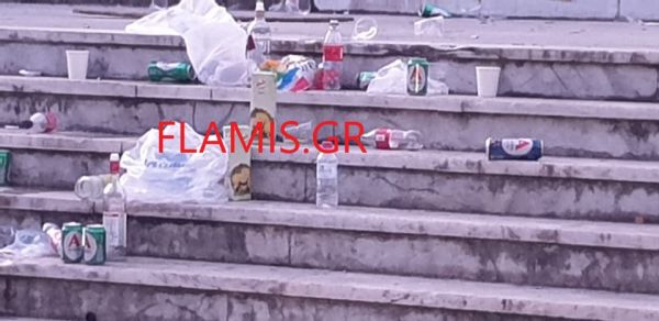 Όλη η περιοχή γέμισε με πλαστικά ποτήρια, μπουκάλια νερού και χαρτιά από σάντουιτς.