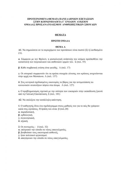 Παρακάτω μπορείτε να δείτε προτεινόμενα θέματα και τις απαντήσεις για το μάθημα της Κοινωνιολογίας.