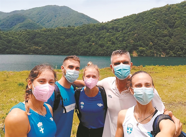 Μάσκες φοράμε παντού, εκτός από την ώρα που οι αθλητές μας είναι στις βάρκες για προπόνηση. Εγώ με τον Τζιάνι (Ποστιλιόνε) φοράμε και στο καταμαράν όπου είμαστε συνοδεύοντας τους αθλητές», λέει ο Γιώργος Φώτου, που όπως και όλη η αποστολή κινείται μέσα σε… γραμμές.