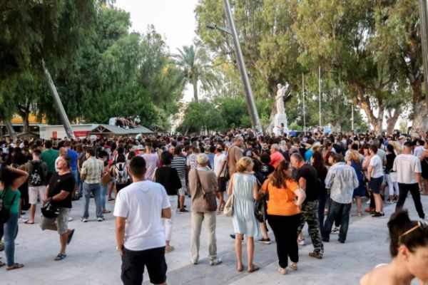 Οι συγκεντρωμένοι, και σε αυτή την περίπτωση δεν φορούσαν μάσκες και δεν κρατούσαν τις αποστάσεις που συστήνονται σε συνωστισμό.