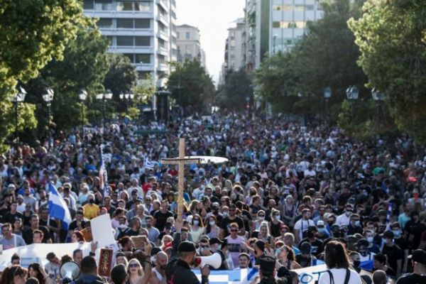 Την ώρα που η μετάλλαξη Δέλτα «σαρώνει» τη χώρα και τα κρούσματα του κοροναϊού εν μέσω θέρους βρίσκονται σε έξαρση, μερικές χιλιάδες άνθρωποι συγκεντρώθηκαν σε κεντρικές πλατείες της χώρας, δίχως ίχνος προφύλαξης, προκειμένου να διαδηλώσουν εναντίον των νέων μέτρων της κυβέρνησης.
