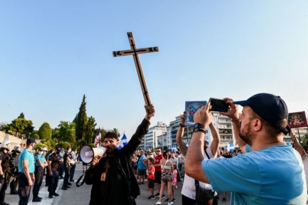 Οι διαδηλωτες κρατούσαν ελληνικές σημαίες, εικόνες και μεγάλους σταυρούς, ενώ στα πανό αναγραφόταν συνθήματα όπως: «Όχι στα εμβόλια του φασισμού και του θανάτου», «Η μετάλλαξη των Ελλήνων λέγεται ενότητα», «Οχι στον υποχρεωτικό εμβολιασμό». Κάποια άλλα έκαναν λόγο για «ναζιστικά εμβόλια και τσιπάκια».