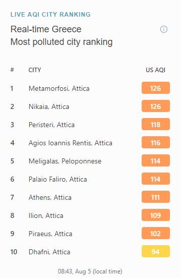 Ανάλογα στοιχεία παρέχει και η ιστοσελίδα iqair.com.
