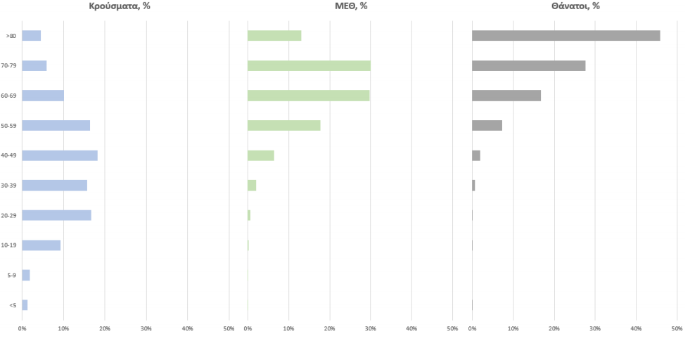 Η διάμεση ηλικία των κρουσμάτων είναι 40 έτη (εύρος 0.2 έως 106 έτη), ενώ η διάμεση ηλικία των θανόντων είναι 78 έτη (εύρος 0.2 έως 106 έτη).