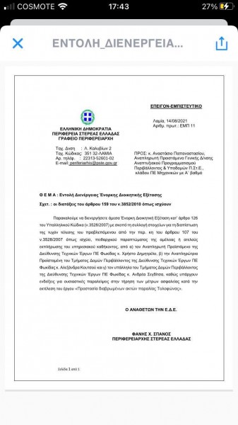 Ο περιφερειάρχης ξεκίνησε και ΕΔΕ (ένορκη διοικητική εξέταση) με αφορμή το γεγονός όπως έγραψε το in.gr.