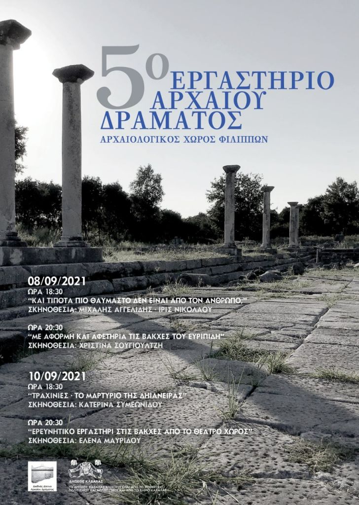 Το ΔΗΠΕΘΕ Καβάλας πραγματοποιεί το 5ο Εργαστήριο Αρχαίου Δράματος, ένα πρωτότυπο camp στην περιοχή των Κρηνίδων, πρωτεύουσα της ενότητας Φιλίππων, του Δήμου Καβάλας.
