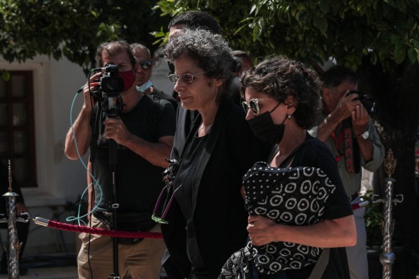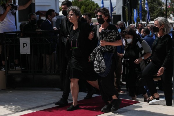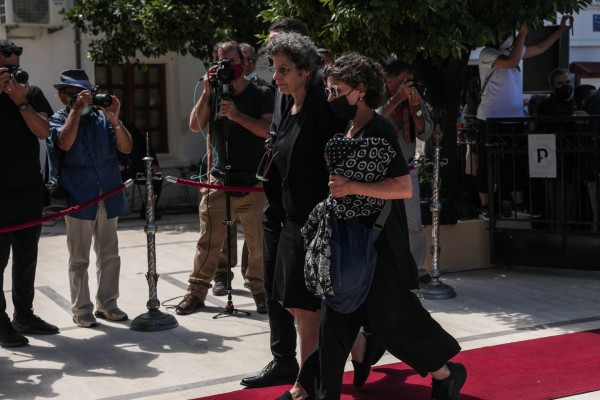 Λίγο μετά τις 12:30 έφτασε και η κόρη του Μίκη Θεοδωράκη, Μαργαρίτα και εκείνη στον Γαλατά, υποβασταζόμενη και με δάκρυα στα μάτια, για το ύστατο «χαίρε» στον πατέρα της.